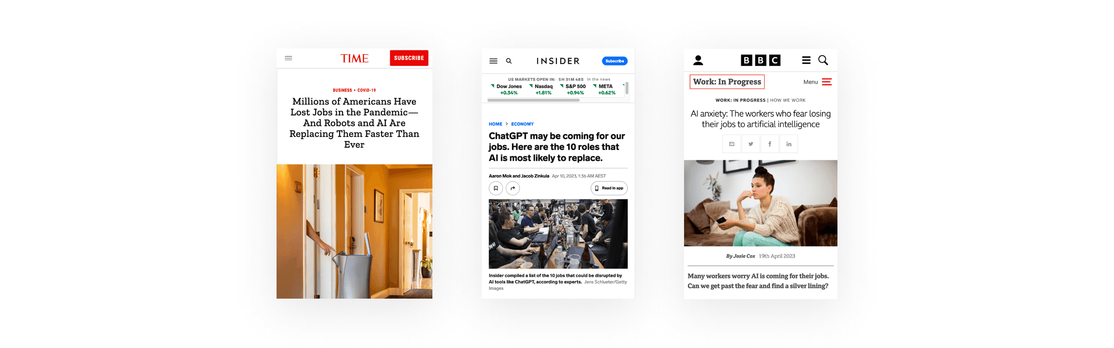 The second tile highlights the problems with the view that all jobs in the future will be automated. The message is reinforced in the third tile by highlighting the solution to the problem, namely the innovations that AI will bring to the job market.